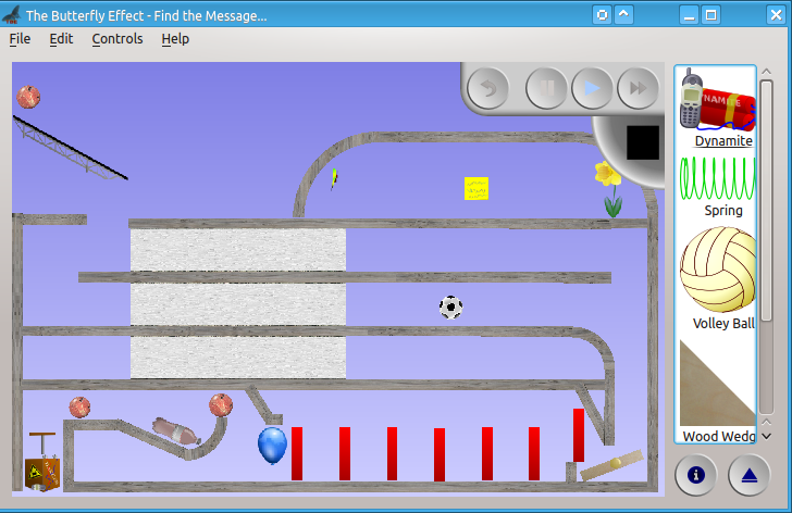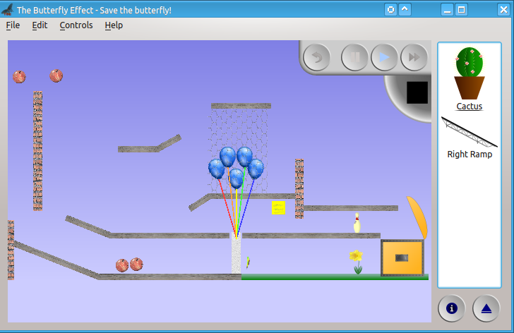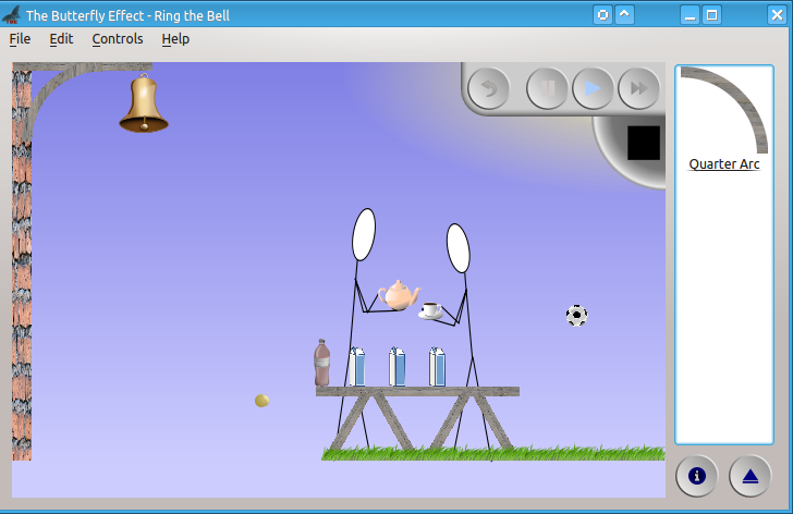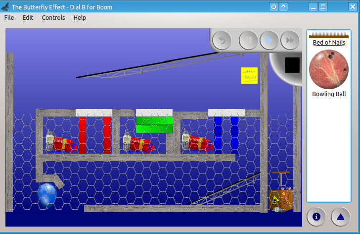 The Butterfly Effect is a free and open source game that uses realistic physics simulations to combine lots of simple mechanical elements to achieve a simple goal in the most complex way possible.